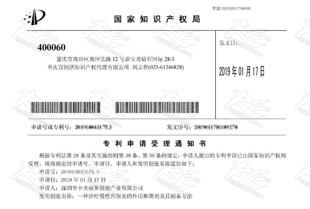 ▲专利申请受理通知书